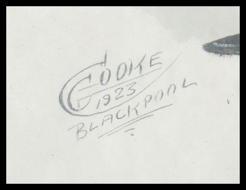 A framed and glazed political caricature painting picture of a suited political type figure smoking on a pipe and signed to the corner Cooke 1923