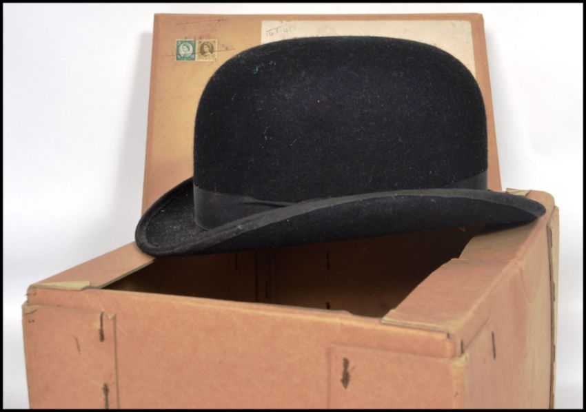 A vintage 20th century ladies hunting bowler hat by Lock and Co London of moleskin construction with black ribbon band complete in original box. Measures 28.5cm.