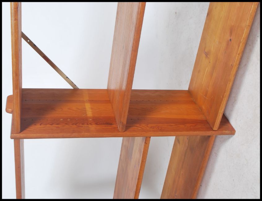A retro 20th century modular pine open wall unit, having adjustable shelves together with another modular painted unit of smaller proportions.