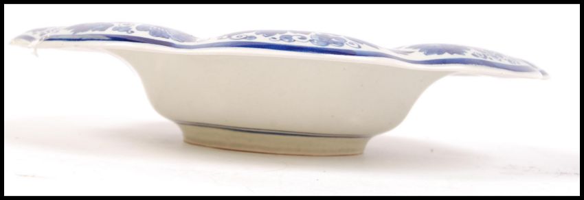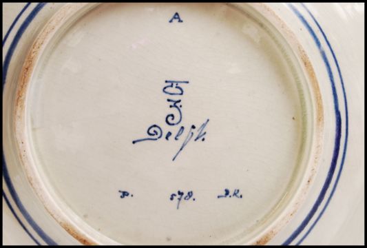 A 20th century Delft large ceramic bowl with painted floral decoration and raised scalloped border. Marks to base.