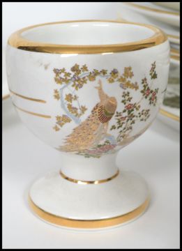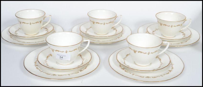 A part bone china gilt decorated on white ground dinner service by Royal Worcester consisting of plates, cups, bowls etc. All stamped to base.