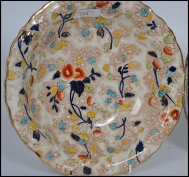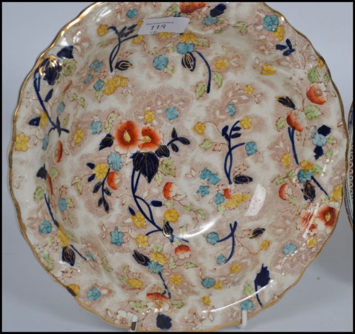 A collection of 19th century Staffordshire cabinet plates, to include a pair of Imari style bowls and a pair of graduating platters. Measures  27cm deep.