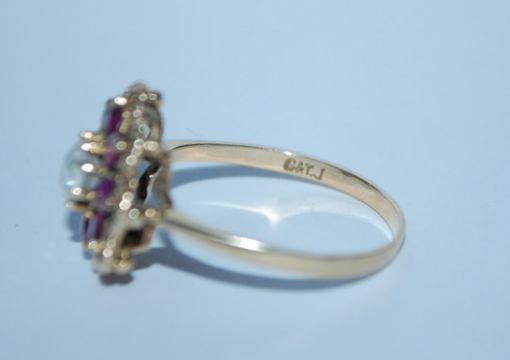 A hallmarked 9ct gold pink and white stone cluster ring. Hallmarked London. Size S. Weight 3.4g.