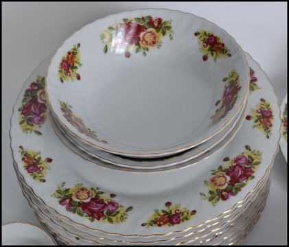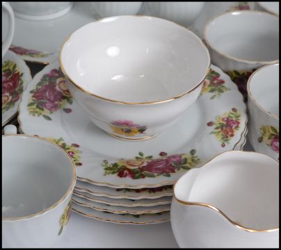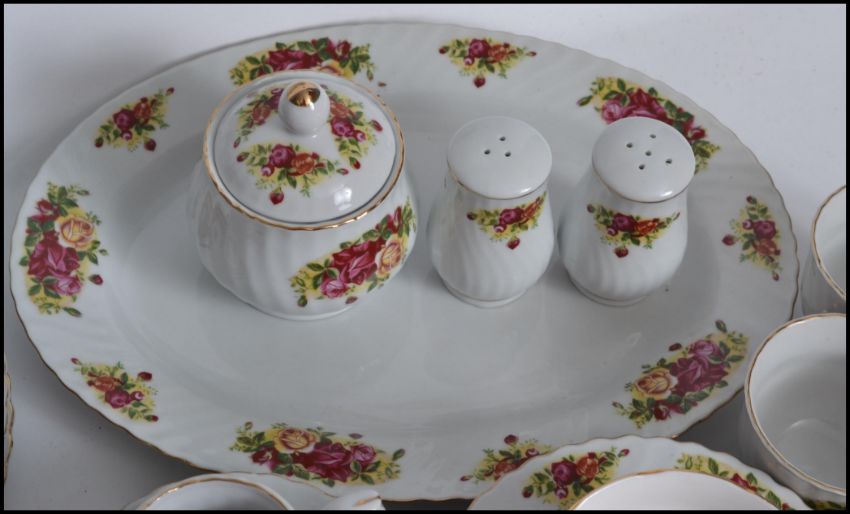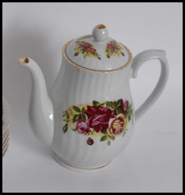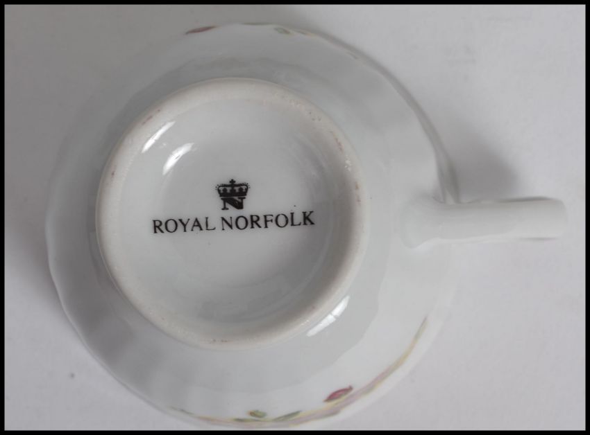 An extensive bone China tea service by Royal Norfolk in the manner of Royal Albert Country Roses, consisting of trio's teapots etc please refer to images. Measures: 36cm wide.