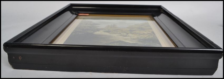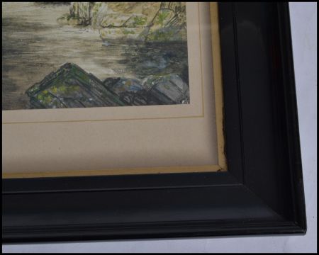 A framed and glazed 19th century painting of a river scene depicting trees and people set in an ebonised frame. Signed by Artist WF Stanley 1970