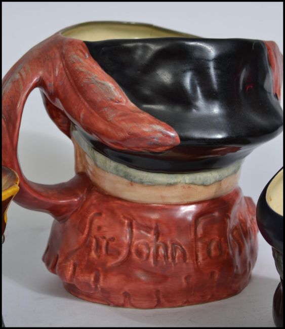 A collection of ceramics to include a Beswick cat, Doulton character jugs to include Falstaff, Dick Turpin, Captain Ahab & Captain Henry Morgan. Measures: 19cm wide.