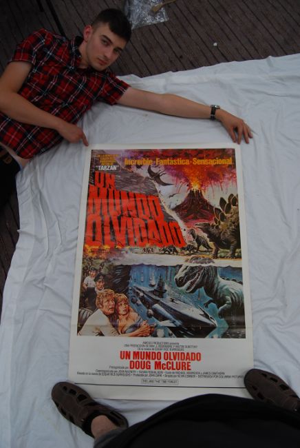 A pair of vintage ' The Land That Time Forgot ' cinema movie film posters. Each identical, with large underwater dinosaur scene. Spanish One Sheets. 104cm x 69cm.