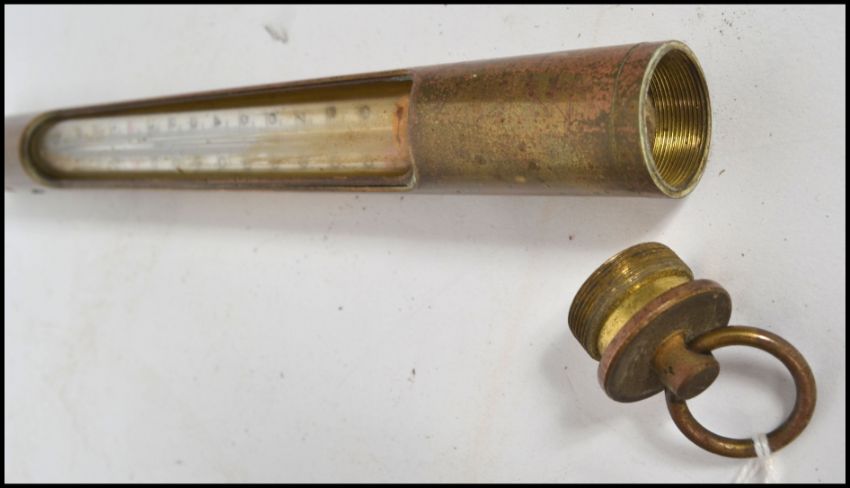 A vintage possible 19th century brass cased thermometer in the manner of Negretti & Zambra  possibly a soil thermometer. Measures 29cm long.
