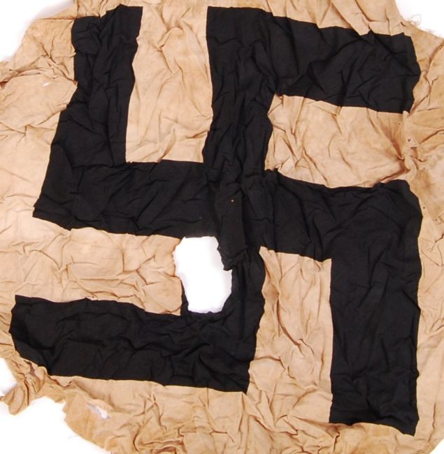 An original Nazi Germany Third Reich inner white circle Swastika emblem cut from an original Nazi flag. Measures approx 60cm in diameter.