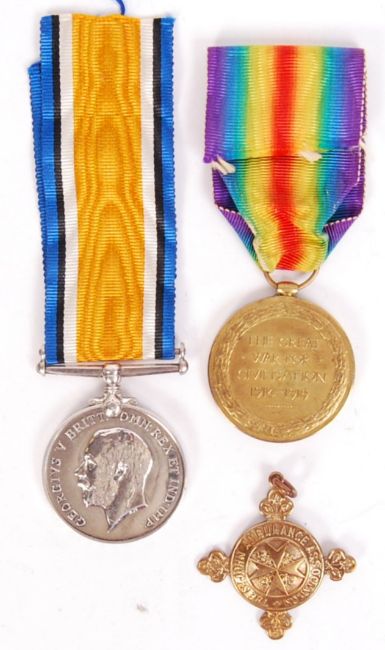An original WWI First World War medal group, belonging to a 1874 Gnr GSC Jenkins, Royal Artillery. Comprising of his War Medal (possibly reissued - very clean) and Victory medal, along with an engraved St Johns Ambulance badge.