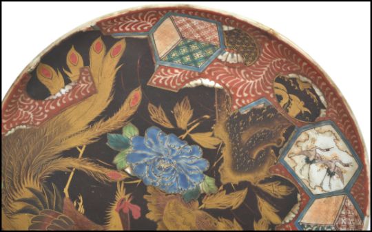 A stunning 18th century Japanese Imari cabinet plate depicting a gilt fighting cock amongst fauna