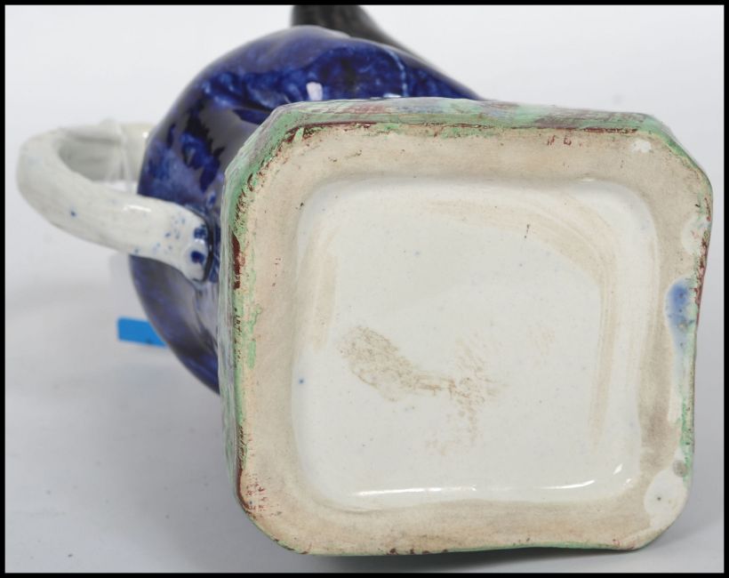 A 19th century Staffordshire Ralph Wood-type Toby jug in the form of a seated Toby Philpot holding a pipe and jug