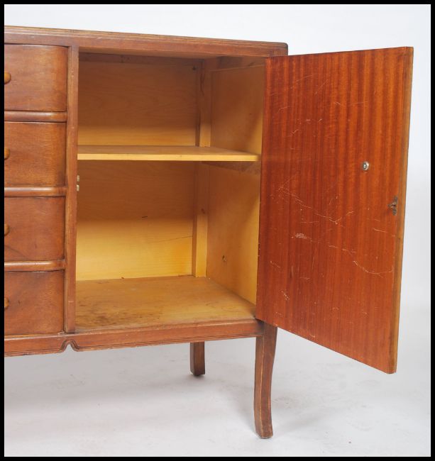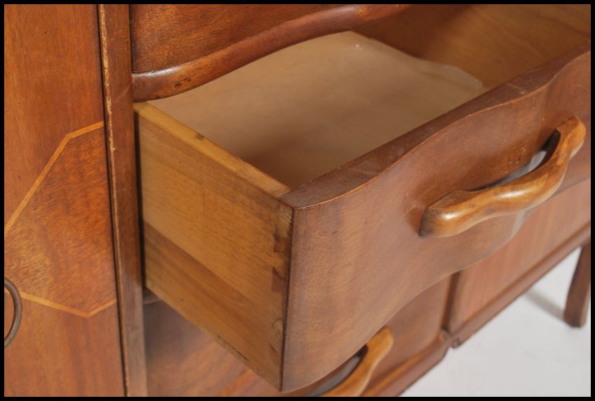 A 1950's mahogany and line inlaid retro sideboard in the manner of Vansen. The sideboard with line inlaid details with central chest of drawers, cupboards to the sides