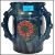 An Elton ware three handled loving jug having tube lined flowers in strawberry colourway with a blue and purple ground, three spouts to the rim and prunted handles. repair to rim.  Measurements: 20 cm high, 19 cm wide and 19 cm deep.