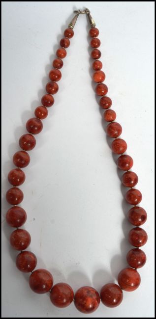 A vintage green jade bangle bracelet along with a graduating apple coral necklace with s hook clasp.