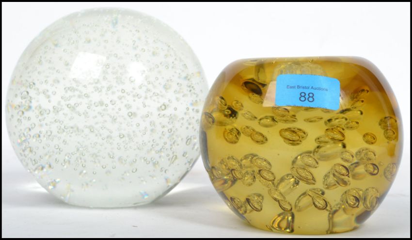 Two large 20th century studio art glass bubble control paperweight dumps.