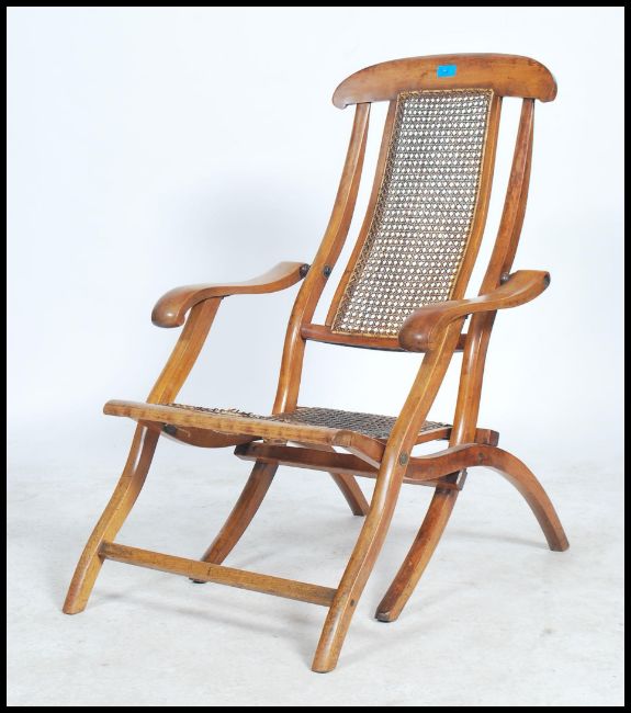 A Victorian 19th century walnut steamer desk chair - campaign chair being upholstered in berfere cane work