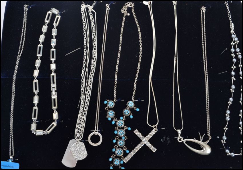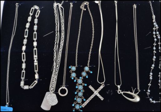 A collection of vintage ladies necklaces to include turquoise, bead, crucifix, dog tag etc.