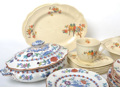 A vintage 20th century Booths ceramic floral pattern dinner service along with a parrot ware dinner service. Please see images.