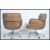 A pair of tan leather retro style swivel arm chairs raised on chrome supports with fitted castors. Measures 84cms x 71cms x 71cms.