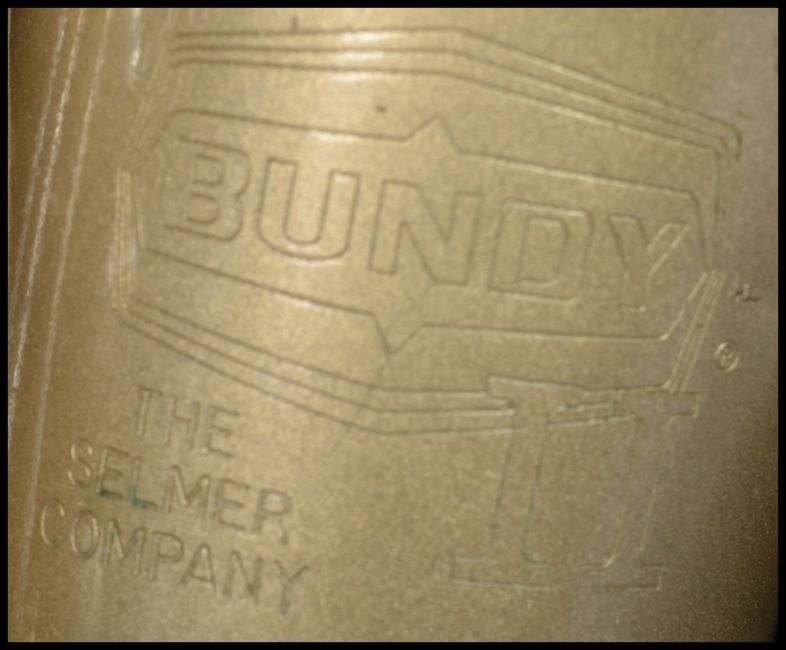 A vintage Selmer Bundy II saxophone and mouthpiece complete in original type. Case measures: 25 cm high, 60 cm wide and 17 cm deep.