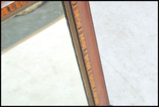 A Victorian mahogany tunbridge inlaid overmantel mirror having central mirror glass with inlaid details raised on a plinth base