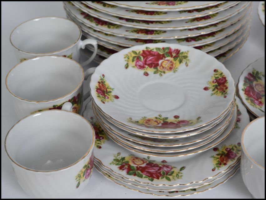 An extensive bone China tea service by Royal Norfolk in the manner of Royal Albert Country Roses, consisting of trio's teapots etc please refer to images. Measures: 36cm wide.