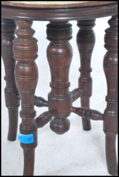 Victorian carved walnut revolving piano stool standing on a turned pillar and tripod base. Measures 92cms by 34cms