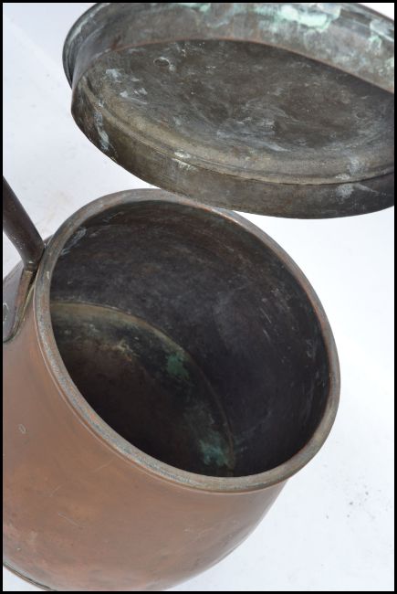 A 19th century Victorian copper lidded twelve / 12 pint sauce pan / stock pot. Measurements: 42 cm high, 30 cm wide and 51 cm deep.