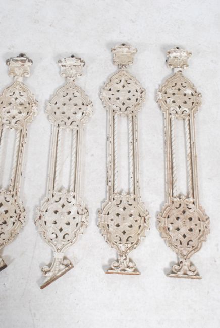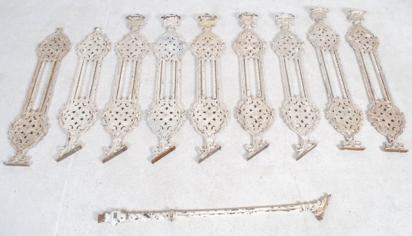 A good set of 19th century cast iron painted balustrade / staiway uprights. Each painted white with pierced rococo design.