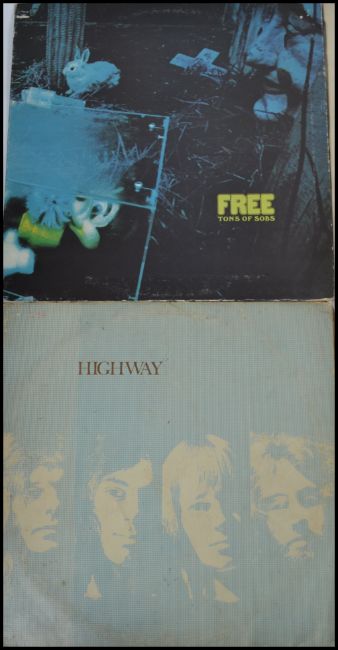 A group of six long play LP vinyl records by Free to include, Highway, Free At Last, Tons Of Sobs all on pink Island rim, Heartbreaker, Free Live and Fire and Water,