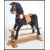 A vintage child's rocking horse of larger proportions raised on a wooden rocker with leather saddle, makers Mammas and Pappas, given to the vendors step daughter by David Dickinson. Measures 107cms high by 118cms wide by 44cms diameter.
