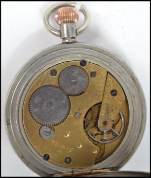 A silver plated Swiss made lever open faced crown wind pocket watch, having enamel face with Roman numeral chapter ring and a subsidiary seconds dial.