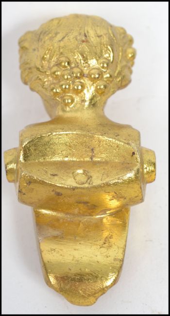 A 19th century Victorian gilded metal paperweight in the form of a page boy having scrolled sides and detailed features. Measurements: 15 cm high, 17 cm wide and 9 cm deep.