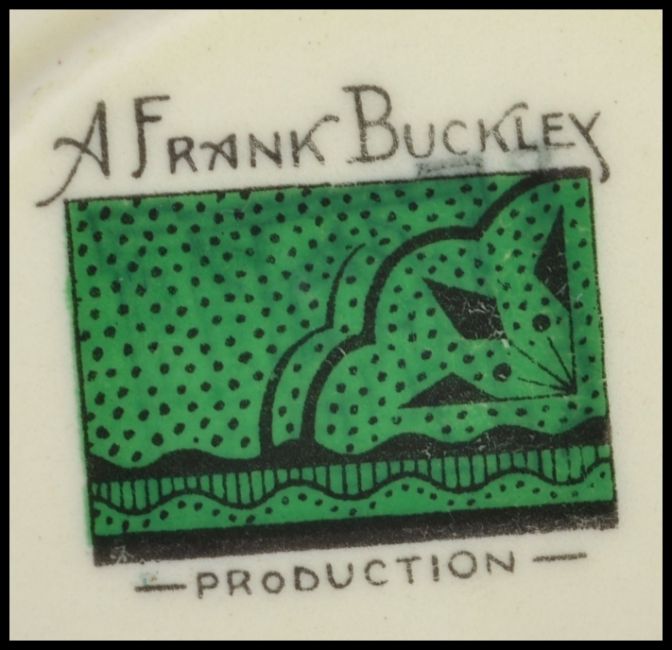 A vintage 20th century Frank Buckley ceramic dinner service having a cream ground with gilt detailing. Green stamp to base.