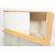 A 1950's mid century Formica kitchen cabinet with short drawers and cupboards together with 2 painted yellow angular sliding door wall fitting cabinets. Measures 90cms high by 98cms wide by 52cms deep. Together with A pair of wall hanging 1950's two tone retro kitchen cabinets, each with sliding doors ( see illustrations )