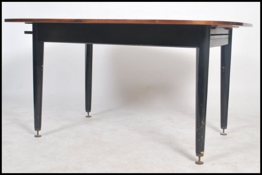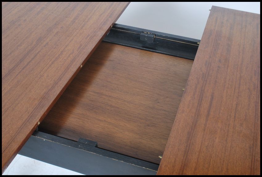 A G-plan Librenza pattern large rectangular extending dining table raised on ebonized legs and having an extra leaf. Measures 73cms x 138cms x 117cms.