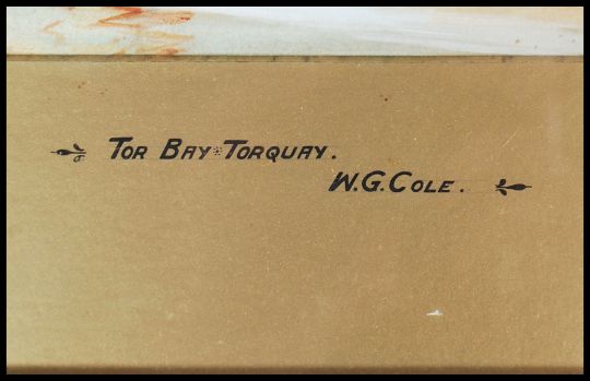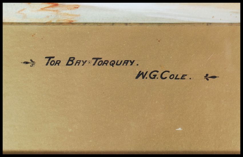 WG Cole. An early 20th coastal scene watercolour painting of Torbay - Torquay being framed and glazed with gilt mount having central notation. The painting being signed to the corner