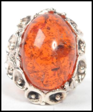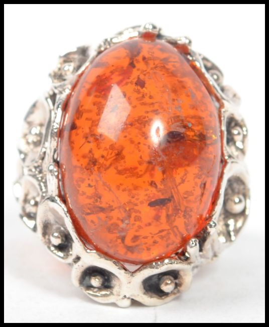 A 20th century large silver and amber adorned cocktail / dress ring
