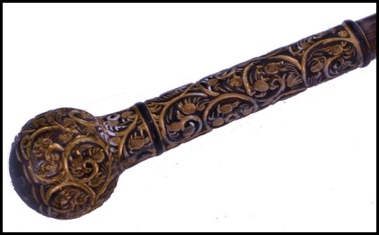 A stunning bamboo and ormolu handled hand held magnifying glass, the shaft decorated with chase decorated floral swirls. Measurements: 36 cm long and 10 cm wide.