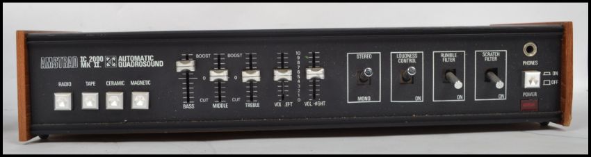 A Realistic MPA 20 solid state PA amp along with an Amstrad IC2000 Mk2. Measurements: 9 cm highest, 44.5 cm widest and 18.5 cm deepest.