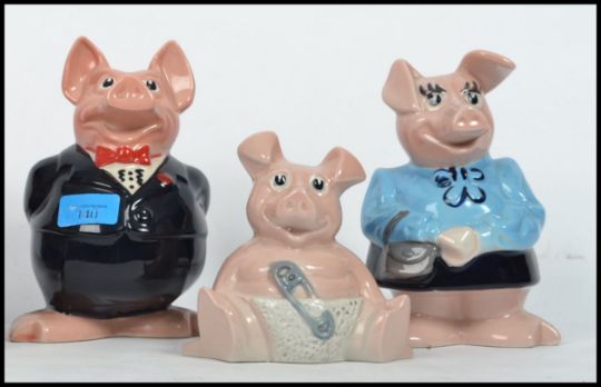 A collection / set of 20th century Wade Nat West Pigs ( see illustrations ). Measurements: 18 cm highest, 14 cm widest and 13 cm deepest.