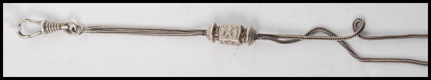 A 19th century silver Continental white metal ladies chatelaine measuring 40cm in length and weighing 23.7g.