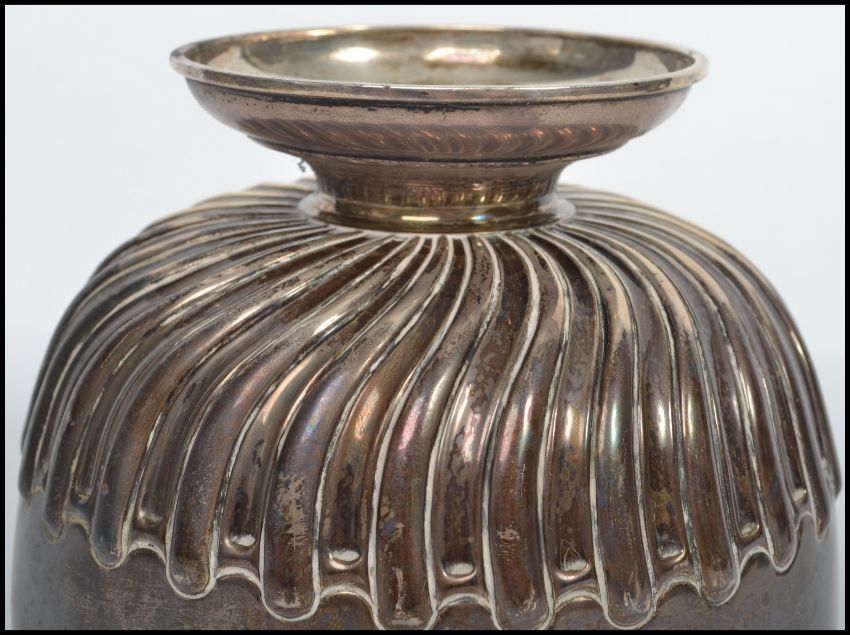 A silver hallmarked pedestal scalloped rose bowl bearing London assay marks, makers marks and date letter a dating to 1916