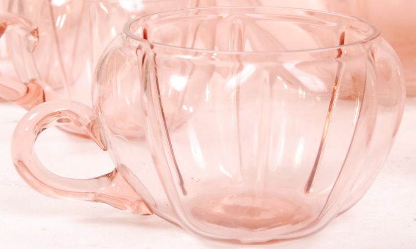 A retro 1950's pumpkin shaped cranberry flash glass coloured punch bowl and lid complete with the glasses.