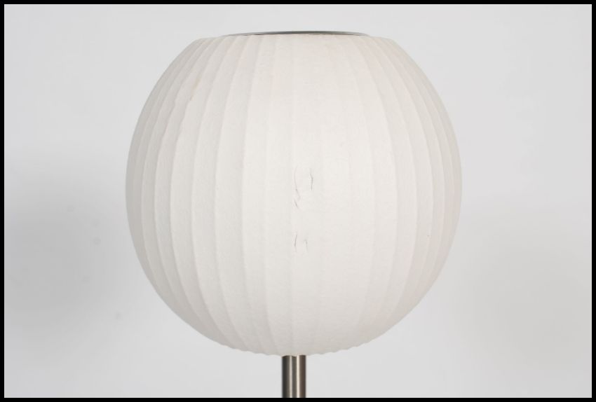 After George Nelson. A pair of floor standing Lotus lamps - standard lamps taken from the 1952 design originally made by Herman Miller. This on a lotus chrome stamd with spherical ball shade.  Measures 124cm high each