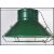 A set of three vintage 20th century oversized industrial factory pendant ceiling lights, finished with green paint and retaining cages.
