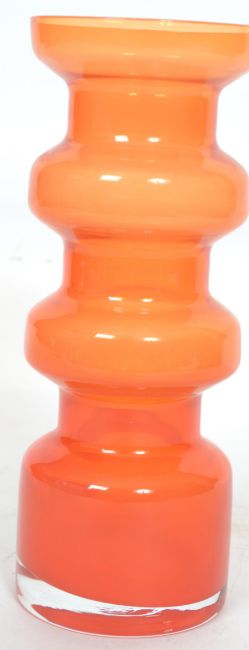 A 20th century studio art glass vase in the manner of Ronald Stennett-Willson, possibly Kings Lyn glass. The vase standing 24cms high / condition very good. Measures: 23cm high x 9cm diameter.
