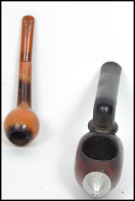 A vintage French novelty bakelite and briarwood tobacco pipe along with a cased meerschaum bowl pipe.
