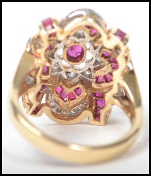 An 18ct yellow gold ladies ruby and diamond ring complete in the presentation case